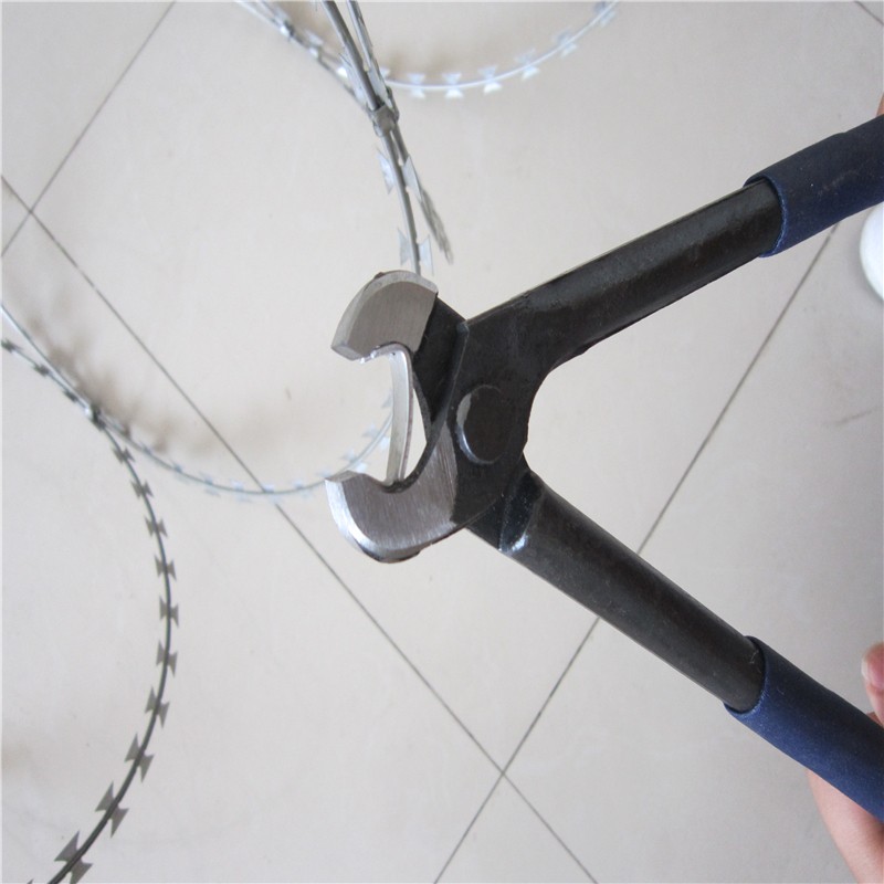 工程案例圍墻加高倒刺網(wǎng)又名刀片刺網(wǎng)或刮刀型刺網(wǎng),是一種近年來防護、隔離能力較強的新型產(chǎn)品。刀片刺網(wǎng)用及耐腐蝕性的熱鍍鋅鋼板或不銹鋼板做材料,由專用機械強力包附與熱鍍鋅高碳鋼絲或不銹鋼絲做的芯線上。圍墻倒刺網(wǎng)由于有著鋒利美觀的刀片刺、高強度的芯線,使本產(chǎn)品綜合了防阻效果好、難破壞、安裝美觀方便快捷、耐老化等諸多優(yōu)點。