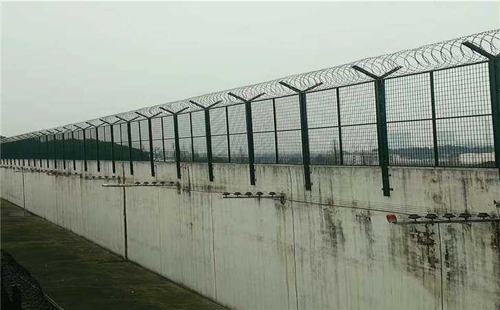 監(jiān)獄護(hù)欄網(wǎng)又稱作"Y型安全防御護(hù)網(wǎng)"和機(jī)場(chǎng)護(hù)欄網(wǎng)通用,是由V型支架立柱,加強(qiáng)型焊接片網(wǎng),安全防盜連接件和熱鍍鋅刀片刺籠組成強(qiáng)度和安全防御性級(jí)別很高。近年來,被廣泛應(yīng)用在監(jiān)獄,軍事基地等高安全場(chǎng)所。注:如果在監(jiān)獄護(hù)欄網(wǎng)頂部加裝刀片刺絲、刀片刺繩后又很好的增強(qiáng)了安全防護(hù)性能。采用電鍍、熱鍍、噴塑、浸塑等防腐形式,具有很好的抗老化、抗曬、耐候等特點(diǎn)。其產(chǎn)品造型美觀、花色多樣,既起到圍欄作用,又起到美化作用。由于具有安全性高、防攀爬能力好,網(wǎng)片連接方式采用特制SBS緊扣件,有效防止人為的破壞性拆卸,橫向四道折彎加強(qiáng)筋,使網(wǎng)面強(qiáng)度顯著增加。