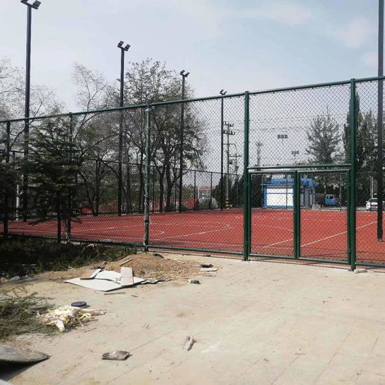 體育場(chǎng)圍網(wǎng)特點(diǎn):色彩鮮亮,抗老化,耐腐蝕,網(wǎng)面平整,強(qiáng)力張緊,不易受外力撞擊變形。 圍網(wǎng)采用進(jìn)口PVC材質(zhì)包塑鐵絲網(wǎng)做體育場(chǎng)的圍網(wǎng),既可節(jié)省每年為普通鐵絲重新油漆的費(fèi)用,其使用壽命又較普通鐵絲網(wǎng)長(zhǎng)三~五年,可以保證不會(huì)卡住或穿過(guò)網(wǎng)球。