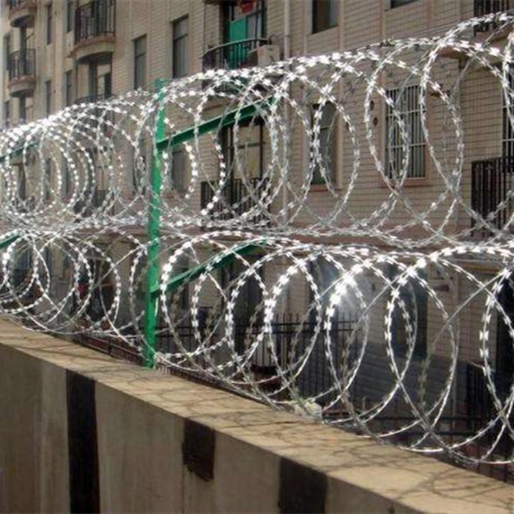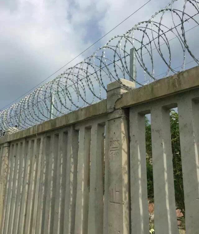新聞動(dòng)態(tài)2012年最新《鐵路線路防護(hù)柵欄》[通線(2012)8001]通用參考圖出爐! 文獻(xiàn)規(guī)定:鐵路柵欄一改往日焊接鋼絲網(wǎng)柵欄、刺絲網(wǎng)柵欄等產(chǎn)品,改為防御性更強(qiáng)、壽命更長久的:鋼筋混凝土柵欄+0.5米高刺絲滾籠的防護(hù)柵欄。詳細(xì)內(nèi)容如下: 鋼筋混凝土柵欄:詳見圖紙 0.5米高刺絲滾籠組成:刺絲刺繩+刀刺滾籠+鋼絲+立柱 圖集中:5、刺絲滾籠:(1)刺絲滾籠采用刀片刺繩繞圈后相鄰兩圈每隔120度用刺絲連接卡固定,張開后形成蛇腹網(wǎng)狀,閉合后刀片刺繩卷徑為50cm,張開后每交叉圈安裝間距20cm,直徑不小于45cm。(2)刀片刺繩由沖切鋼板采用機(jī)械軋?jiān)阡摻z上成型,刀刺寬度22mm,刀刃垂直間距15mm,刀刺縱向間距34mm,芯絲直徑為2.5mm。刀片厚度0.5mm的Q195鋼板網(wǎng)沖切制作。芯絲由HPB300 -6.5mm高線鋼絲冷拔加工。(3)刺絲滾籠由刺絲連接卡扣與固定在支架上的縱向拉筋相連接。縱向拉筋與支架的連接采用-2.5mm的冷拔鍍鋅鋼絲繞2圈后擰緊固定。支架設(shè)置在跨度3m防護(hù)柵欄的立柱和跨中位置,其中跨度進(jìn)設(shè)置與立柱上部,支架與防護(hù)柵欄采用支架抱箍連接,對(duì)于已經(jīng)安裝金屬網(wǎng)片的防護(hù)柵欄。刺絲滾籠直接采用-2.5mm的冷拔鍍鋅鋼絲或刺絲連接卡扣固定于金屬網(wǎng)橫片和金屬絲上。(4)刺絲滾籠的下緣距離鋼筋混凝土防護(hù)柵欄上緣的垂直距離為0.05m.6.陡坡地段防護(hù)柵欄下檻下部與地面間的間隙采用C25混凝土封閉,寬度180mm,與立柱兩倒平齊,埋入地面以下不小于0.3m.每單元于地面處留移100mm泄水孔。