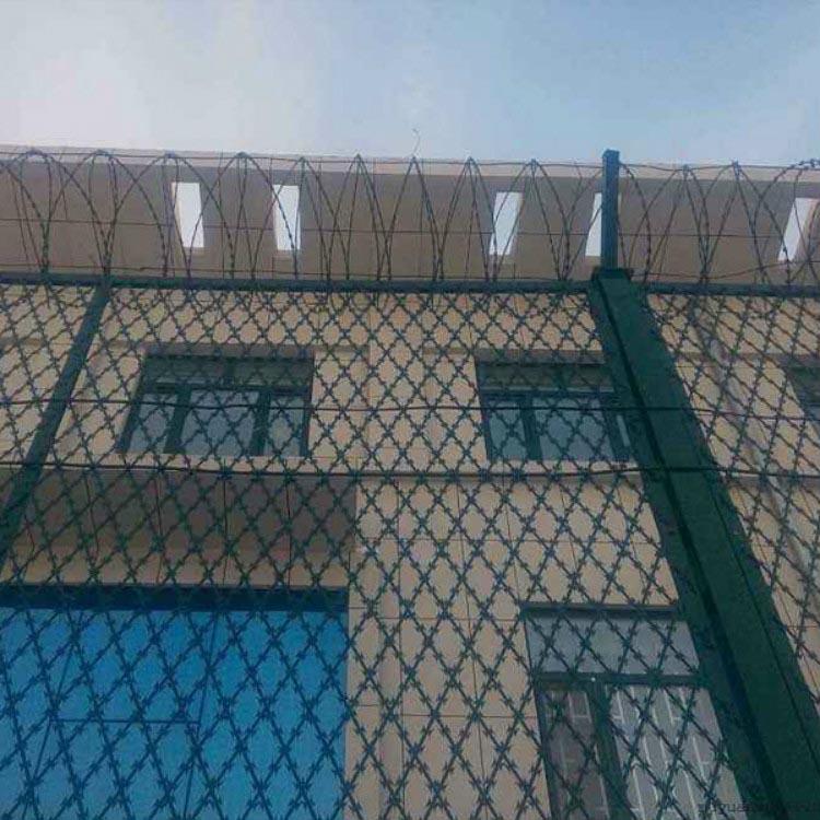 監(jiān)獄刀刺隔離網(wǎng)又名刀片刺繩隔離網(wǎng)、刀刺防護(hù)網(wǎng)。監(jiān)獄刀片隔離網(wǎng)是一種新型防護(hù)網(wǎng)。