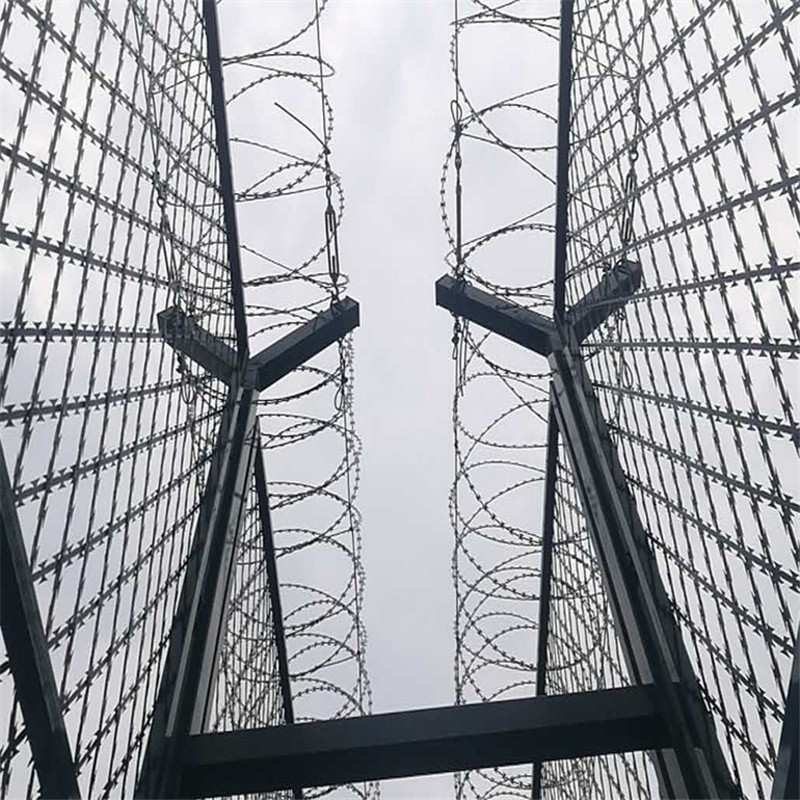 刀片刺網(wǎng)是近年在高戒備場所應(yīng)用比較廣的一種防護(hù)隔離網(wǎng),可以用在墻外戒區(qū)隔離網(wǎng)、巡邏道加高隔離網(wǎng)、墻內(nèi)5米隔離網(wǎng)以及各個功能區(qū)隔離網(wǎng)。是一種新型的在防御領(lǐng)域較突出的圍網(wǎng)。下邊我們介紹一款常用的刀片刺網(wǎng)隔離網(wǎng)的規(guī)格型號及工藝要求,這也是采用的比較主流的規(guī)格型號。