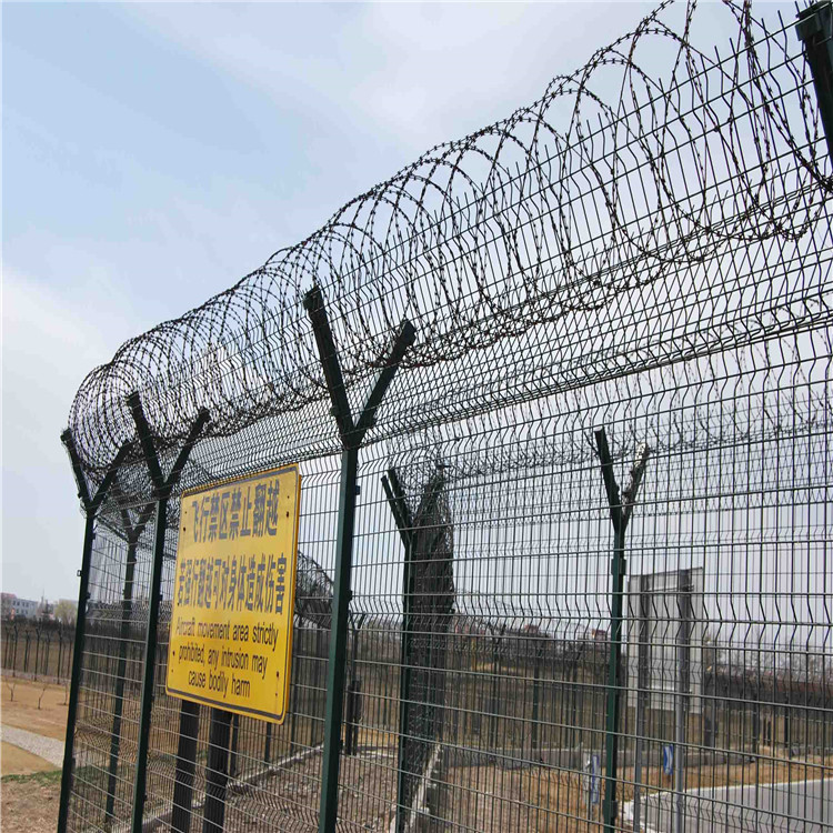 新聞動態(tài)關(guān)于機(jī)場鋼筋網(wǎng)圍界的概述,本產(chǎn)品采用優(yōu)質(zhì)低碳鋼或者是鋁包鋼編焊而成。立柱多采用金屬管,材料的選取應(yīng)考慮景觀協(xié)調(diào)性、與網(wǎng)片或網(wǎng)絲的配合、施工難易程度、防腐等因素,力求做到因地制宜。處理一般采用鍍鋅+噴塑的雙層防腐處理方式。也有部分地區(qū)為增加抗腐蝕性而采用鍍鋅+浸塑的防腐處理方式,用V型支架立拄,加強(qiáng)型焊接片網(wǎng),安全防盜連接件和熱鍍鋅刀片刺籠組成強(qiáng)度和安全防御性級別高,使用年限可達(dá)10年。