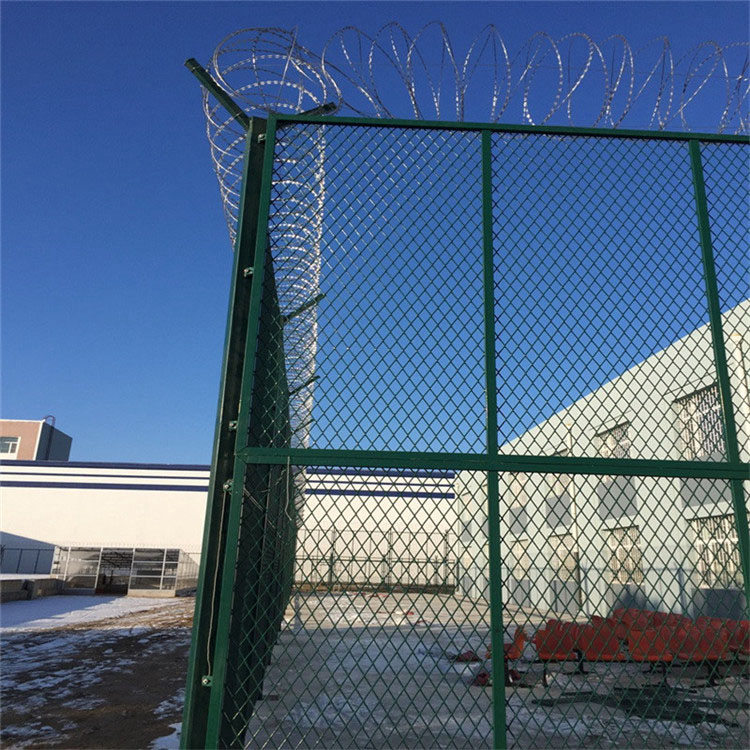 3.結(jié)構(gòu):隔離網(wǎng)的結(jié)構(gòu)應(yīng)簡(jiǎn)單、堅(jiān)固,方便施工和維修。建議采用突出型排列,這樣可以提高囚犯從外面攀爬的難度同時(shí),需要考慮隔離網(wǎng)與地面的連接,確保固定穩(wěn)固。網(wǎng)墻設(shè)計(jì)建設(shè)應(yīng)美觀、實(shí)用;蛇腹形刀刺網(wǎng)刀片鋒銳防銹,外形有直接的震懾作用。應(yīng)具備抗剪切、防攀爬功能,防腐抗銹功能。隔離網(wǎng)的顏色應(yīng)與周圍環(huán)境協(xié)調(diào),一般采用墨綠色。