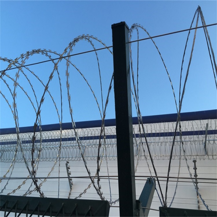 新聞動態(tài)監(jiān)獄隔離網(wǎng)用于監(jiān)獄圍墻加高及圍墻內(nèi)外,監(jiān)獄圍墻內(nèi)外高度一般選用高度4.5米的,圍墻頂部常用為2米或者2.5米。我們平時見到的監(jiān)獄隔離網(wǎng)都是用在圍墻武警巡邏道上或者內(nèi)外墻5米-10米的位置。這些隔離網(wǎng)的頂部都需要加裝蛇腹形刀刺網(wǎng),這個設(shè)計主要是在隔離網(wǎng)這層防攀爬效果的基礎(chǔ)上面,再多一道‘安全墻’,這種刀刺網(wǎng)都是利用鋼板沖出刀片來,用專制卡扣固定在一起。兩個圈用卡扣固定,這樣拉伸開才是連貫一圈一圈固定在一起。刀刺網(wǎng)具有可以在一定范圍內(nèi)自由拉伸覆蓋距離的特點。