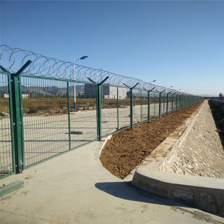 監(jiān)獄隔離網(wǎng)V型支架加裝防拆卸刀刺網(wǎng),刀刺網(wǎng)的直徑一般為500mm、600mm、800mm,材質(zhì)均為優(yōu)質(zhì)304不銹鋼,鎳含量8個以上。刺網(wǎng)芯線直徑為2.5mm、刀片長22mm,刀片寬度15mm,刀片厚度0.5mm。 蛇腹形刀刺網(wǎng)的排列密度不小于16圈/米,相鄰每圈間距不大于120mm 。監(jiān)獄用的刀刺網(wǎng)通??壑g的距離是120mm,直徑500mm的刀刺網(wǎng),覆蓋一米的重量約為2.38公斤(其他直徑的覆蓋長度可以詳細(xì)詢問安平縣艾瑞金屬絲網(wǎng)有限公司業(yè)務(wù)部,向您詳細(xì)解答)。