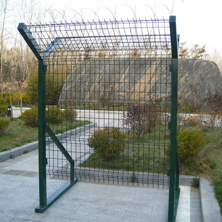 注:如果在機場護欄網(wǎng)頂部加裝刀片刺絲、刀片刺網(wǎng)后又很好的增強了安全防護性能。采用電鍍、熱鍍、噴塑、浸塑等防腐形式,具有很好的抗老化、抗曬、耐腐蝕等特點。其產(chǎn)品造型美觀、花色多樣,既起到圍欄作用,又起到美化作用。由于具有安全性高、防攀爬能力好,網(wǎng)片連接方式采用特制SBS緊扣件,有效防止人為的破壞性拆卸,橫向道折彎加強筋,使網(wǎng)面強度顯著增加。