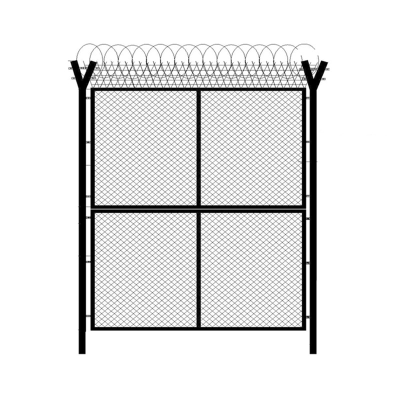監(jiān)獄使用的防護(hù)網(wǎng)是防護(hù)性較高的護(hù)欄網(wǎng),主要是采用高強(qiáng)度的刀片刺網(wǎng)與普通防護(hù)網(wǎng)的結(jié)合,由V型支架立拄、加強(qiáng)型焊接片網(wǎng)、安全防盜連接件和刀片刺網(wǎng)組成。其中刀片刺網(wǎng)是一種新型防護(hù)網(wǎng),由銳利尖角鍍鋅鋼板或不銹鋼薄板做刀片,鋼絲做芯線組合而成的防護(hù)器材。