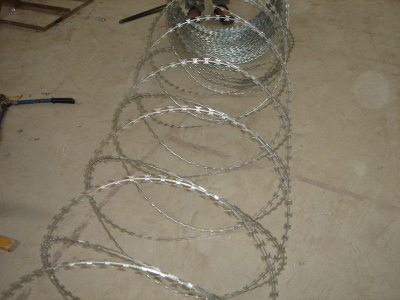 工程案例圍墻加高倒刺網(wǎng)又名刀片刺網(wǎng)或刮刀型刺網(wǎng),是一種近年來防護(hù)、隔離能力較強(qiáng)的新型產(chǎn)品。刀片刺網(wǎng)用及耐腐蝕性的熱鍍鋅鋼板或不銹鋼板做材料,由專用機(jī)械強(qiáng)力包附與熱鍍鋅高碳鋼絲或不銹鋼絲做的芯線上。圍墻倒刺網(wǎng)由于有著鋒利美觀的刀片刺、高強(qiáng)度的芯線,使本產(chǎn)品綜合了防阻效果好、難破壞、安裝美觀方便快捷、耐老化等諸多優(yōu)點(diǎn)。