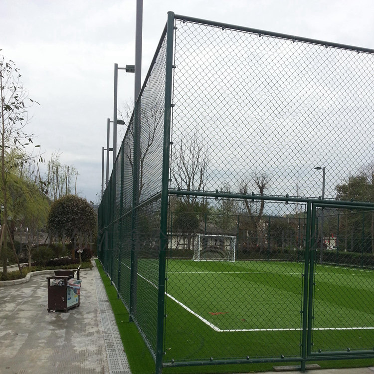 工程案例籠式足球場圍網(wǎng)一般采用包塑絲,立柱、邊框采用噴塑、浸塑處理。