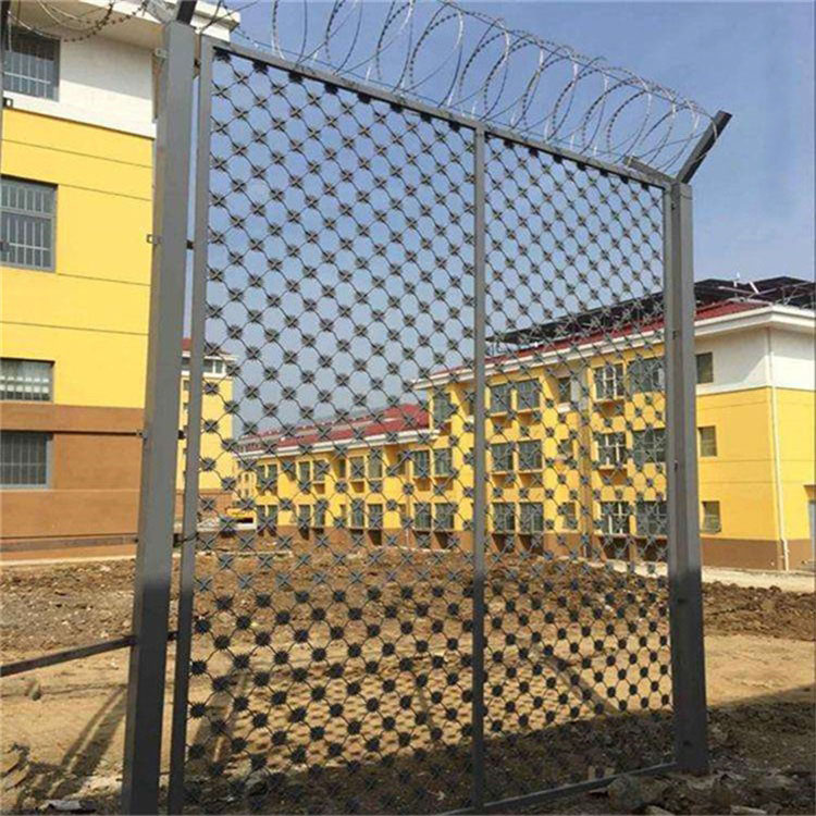 工程案例監(jiān)獄護欄網(wǎng)大門,刀片刺網(wǎng)大門,梅花刺網(wǎng)大門,監(jiān)獄防護網(wǎng)是非常重要的監(jiān)區(qū)安全防護設施,是由焊接鋼網(wǎng)加蛇腹形刀刺網(wǎng)組合而成。產(chǎn)品具有結構新穎、堅固緊密、網(wǎng)面平整、網(wǎng)孔均勻、刀鋒銳利、防攀爬、耐腐蝕性強等特點。Y型架上邊架蛇腹型刀刺:由熱鍍鋅鋼板或不銹鋼薄板沖壓出尖利的刀片狀,高張力鍍鋅鋼絲或者不銹鋼絲做芯線組合而成的阻盡器材。刀刺直徑采取50或60厘米,刀型整潔、刀片鋒利、排列均勻致密、連接堅固、防腐才能強,可能達到防擎越、防拆卸更高保險等級。