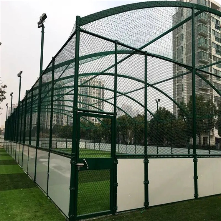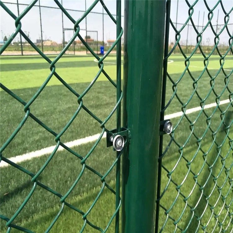 體育場勾花圍網(wǎng)一般采用包塑絲,立柱、邊框采用噴塑、浸塑處理。