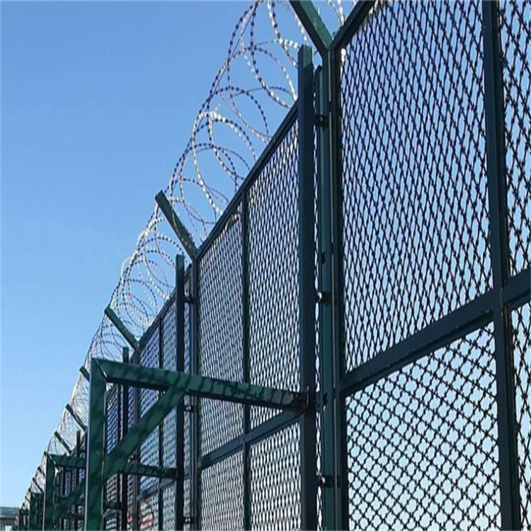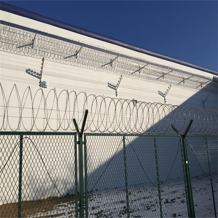 監(jiān)獄鋼網(wǎng)墻又稱作“Y型安全防御護網(wǎng)”,是由V型支架立柱加強型焊接片網(wǎng),安全防盜連接件和熱鍍鋅刀片刺網(wǎng)組成強度和安全防御性級別很高。被廣泛應(yīng)用在監(jiān)獄,軍事基地等高安全場所。