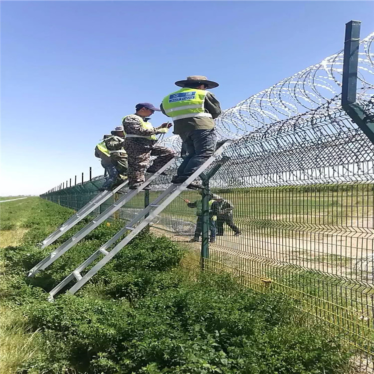 6、特點(diǎn):如果在機(jī)場(chǎng)護(hù)欄網(wǎng)頂部加裝刀片刺絲、刀片刺繩后又很好的增強(qiáng)了安全防護(hù)性能。采用電鍍、熱鍍、噴塑、浸塑等防腐形式。其產(chǎn)品造型美觀、花色多樣,既起到圍欄作用,又起到美化作用。由于具有安全性高、防攀爬能力好,網(wǎng)片連接方式采用特制SBS緊扣件,有效防止人為的破壞性拆卸,機(jī)場(chǎng)護(hù)欄網(wǎng)橫向四道折彎加強(qiáng)筋,使網(wǎng)面強(qiáng)度顯著增加。
