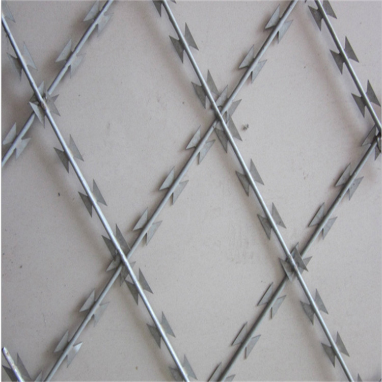 螺旋型交叉式刀片刺網(wǎng)系在兩條刀片刺網(wǎng)之間以不銹鋼片和鍍鋅鋼片強(qiáng)力夾和,展開后即成交叉狀,取其美觀又實用。
