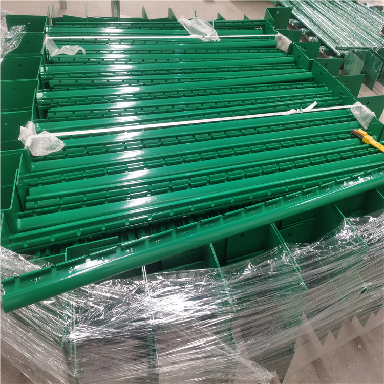 桃型柱護(hù)欄網(wǎng)網(wǎng)片絲徑3.5-6mm 網(wǎng)孔多為長方形:常用7.5*15cm 網(wǎng)片高度1.8m-2.5m,長度多為3m,立柱尺寸:常用5cm*7cm 7cm*10cm 厚度1mm ,表面多浸塑處理,顏色多選,更顯美觀。其筒形柱體、連接筋和左、右向鉤板為一體的板材彎制成型,且板材的兩側(cè)面有若干凹口構(gòu)成鉤板間的缺口。筒狀柱體截面呈類半橢圓狀,筒狀柱體截面呈矩形狀或三角狀,鉤板為多個,且沿柱體的縱向,以與網(wǎng)格孔相配合的間隙分布,鉤板間的缺口為“U”形,鉤板間的缺口為三角形狀或矩形狀。產(chǎn)品安裝時無需特殊配件,采用推進(jìn)式安裝方式,易于撐握,簡便快捷,降低成本。網(wǎng)片通常都加上三道V型折彎加強(qiáng)壓槽,有效的增加了網(wǎng)片的整體強(qiáng)度,加強(qiáng)彎具有較高的剛度和美學(xué)吸引力。立柱由高熱鍍鋅板帶輥壓而成,做工精良細(xì)膩,樣式新穎、獨(dú)特,立柱頂端的防雨帽與立柱的銜接處采用防拆卸設(shè)計,這一設(shè)計特征堪稱桃型柱圍欄系列產(chǎn)品中的創(chuàng)意之作,保證了桃型柱圍欄網(wǎng)更高的安全性。