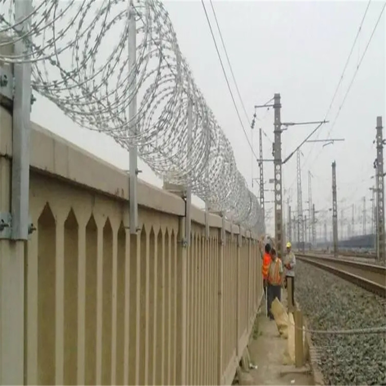 高鋅刺絲滾籠是工程鐵路隔離圍欄的配套產(chǎn)品,在工程鐵路防備隔離柵的上方加裝刺絲滾籠,是安全配套流程。刀片刺繩根據(jù)安置方法不同可歸納:(蛇腹式) 螺旋式刀片刺繩,直線型刀片刺繩,平板式刀片刺繩,刀片刺繩焊接網(wǎng)。
