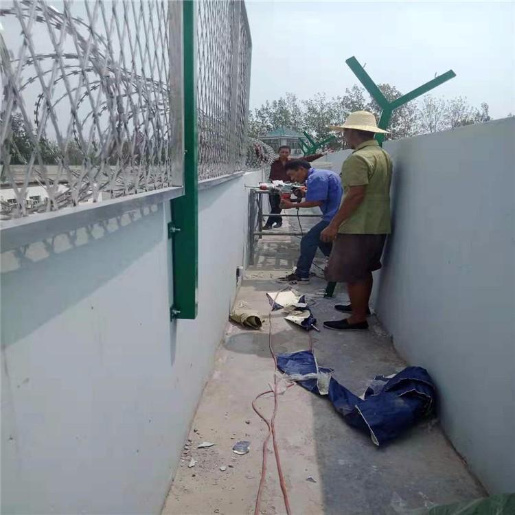 刀刺隔離防護(hù)網(wǎng)鋼網(wǎng)墻刀刺網(wǎng)直條型刀片刺繩產(chǎn)品類似于鐵絲刺繩,只不過刺的位置為刀片狀,一般3米長一根,立柱間距也為三米,其長度也可依客戶要求制作。安裝完成能夠構(gòu)建一道防護(hù)墻,深受監(jiān)獄等防護(hù)性的場所使用,其外觀顏色可以隨意搭配,具有美觀防護(hù)作用。