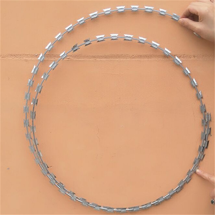 直條型刀片刺繩表面防腐處理有電鍍鋅、熱鍍鋅以及鍍鋅噴塑(顏色隨意選擇),根據(jù)客戶的要求,做不同的處理。其主要用于監(jiān)獄護欄網(wǎng)、軍事護欄網(wǎng)、機場護欄網(wǎng)、小區(qū)防盜網(wǎng)、廠區(qū)圍墻防盜網(wǎng),與其他護欄網(wǎng)相結(jié)合防護作用會很好。監(jiān)獄基本上用的都是刀片刺網(wǎng)。