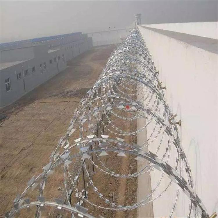 2012年最新《鐵路線路防護(hù)柵欄》[通線(2012)8001]通用參考圖出爐! 文獻(xiàn)規(guī)定:鐵路柵欄一改往日焊接鋼絲網(wǎng)柵欄、刺絲網(wǎng)柵欄等產(chǎn)品,改為防御性更強(qiáng)、壽命更長久的:鋼筋混凝土柵欄+0.5米高刺絲滾籠的防護(hù)柵欄。詳細(xì)內(nèi)容如下: 鋼筋混凝土柵欄:詳見圖紙 0.5米高刺絲滾籠組成:刺絲刺繩+刀刺滾籠+鋼絲+立柱 圖集中:5、刺絲滾籠:(1)刺絲滾籠采用刀片刺繩繞圈后相鄰兩圈每隔120度用刺絲連接卡固定,張開后形成蛇腹網(wǎng)狀,閉合后刀片刺繩卷徑為50cm,張開后每交叉圈安裝間距20cm,直徑不小于45cm。(2)刀片刺繩由沖切鋼板采用機(jī)械軋在鋼絲上成型,刀刺寬度22mm,刀刃垂直間距15mm,刀刺縱向間距34mm,芯絲直徑為2.5mm。刀片厚度0.5mm的Q195鋼板網(wǎng)沖切制作。芯絲由HPB300 -6.5mm高線鋼絲冷拔加工。(3)刺絲滾籠由刺絲連接卡扣與固定在支架上的縱向拉筋相連接??v向拉筋與支架的連接采用-2.5mm的冷拔鍍鋅鋼絲繞2圈后擰緊固定。