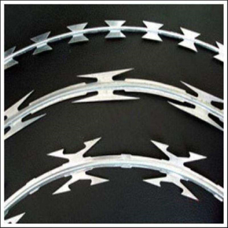 螺旋型交叉式刀片刺網(wǎng)系在兩條刀片刺網(wǎng)之間以不銹鋼片和鍍鋅鋼片強(qiáng)力夾和,展開后即成交叉狀,取其美觀又實(shí)用。