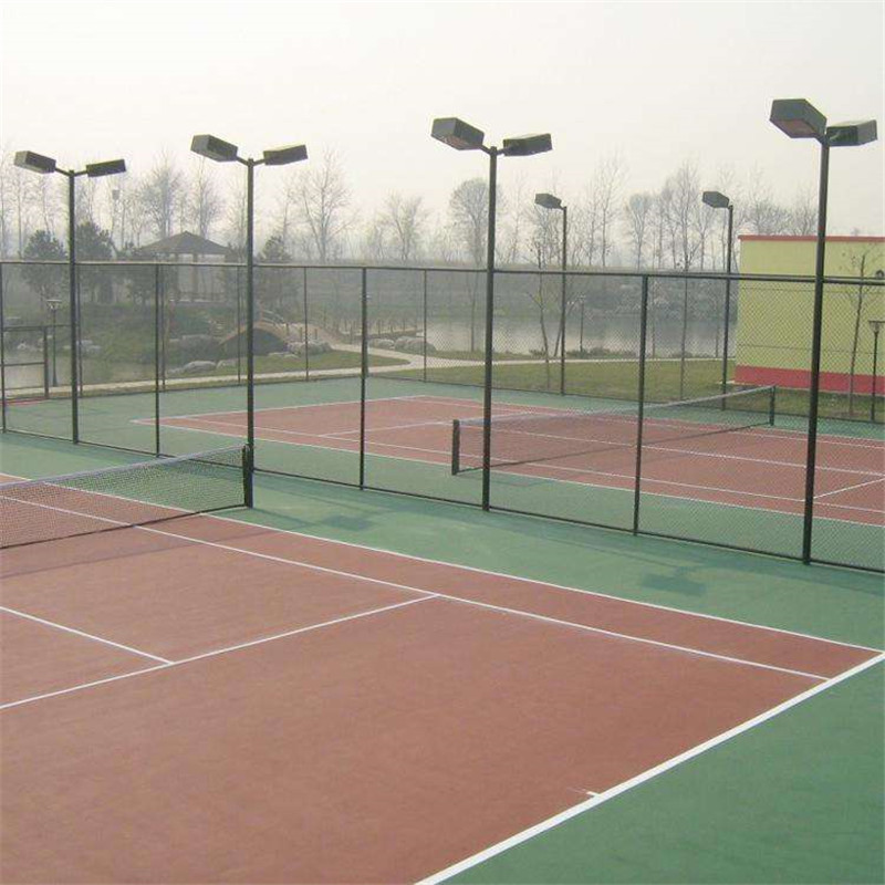 選用優(yōu)質(zhì)低碳鋼絲。 編織方法: 編織焊接而成。 規(guī)格: 1. 包塑絲經(jīng):3.8mm ; 2. 網(wǎng)孔:50mm X 50mm; 3. 尺寸:3000mm X 4000mm; 4. 立柱:60/2.5mm; 5. 橫柱:48/2mm; 防腐處理: 電鍍、熱鍍、噴塑、浸塑處。 優(yōu)點: 具有防腐、防老化、抗曬、耐候、色彩鮮亮、網(wǎng)面平整,強(qiáng)力張緊,不易受外力撞擊變形、現(xiàn)場施工安裝、靈活性好(可根據(jù)現(xiàn)場要求隨時調(diào)整造型和尺寸)。 可選顏色: 藍(lán)色、綠色、黃色、白色等。
