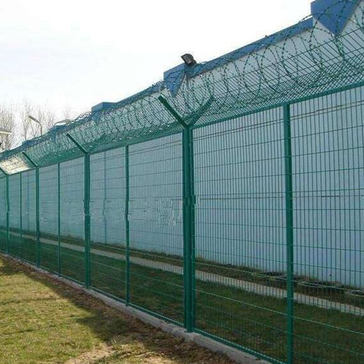 看守所防攀爬防護網(wǎng)常用規(guī)格材質(zhì)采用Q235碳鋼;網(wǎng)孔:50*100mm、70*150mm等;絲徑:3.8mm-6mm,管徑:60mm*60mm*2mm等,型號可根據(jù)用戶需求定做;立柱焊接成Y型,表面浸塑處理,網(wǎng)片高度2000mm-3000mm,長度2500mm-3000mm;V型頂端安裝刀片刺網(wǎng),直徑采用50cm-60cm,刀片刺網(wǎng)主要是由熱鍍鋅鋼板或不銹鋼薄板沖壓而成的,它擁有尖銳的刀片,高張力鍍鋅鋼絲或者不銹鋼絲做芯線組合而成的產(chǎn)品。由于刺網(wǎng)的形狀很特別,而且每個角度都有尖狀刀片,因而能達到防御保護效果。