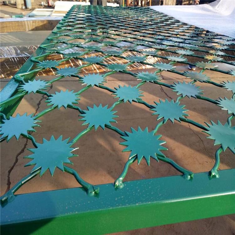 整體太陽(yáng)花監(jiān)獄護(hù)欄網(wǎng)表面墨綠色噴涂、也常用銀灰色噴涂、高端大氣、既起到防腐防銹的作用、又有裝飾的效果。