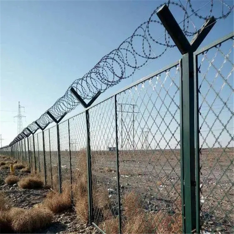 監(jiān)獄刀片刺隔離網主要用于園林公寓、機關單位、監(jiān)獄、哨所、邊防等的圈禁防護。刀刺隔離網由銳利尖角鍍鋅鋼板或不銹鋼薄板做刀片,高張力鋼絲做芯線組合而成的阻絕器材。由于刀片刺繩隔離網造形獨特不易觸摸,因而能達到很好的防護隔離效果。施工迅速,既省經費,又可達到安全隔離網效果。