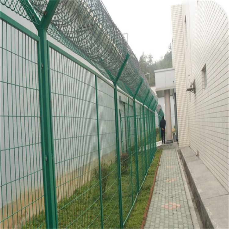 看守所隔離網(wǎng)立柱的規(guī)格采用優(yōu)質(zhì)國標鋼管制作,常用規(guī)格為60mm*60mm、60mm*80mm、80mm*80mm、100mm*100mm方管或者直徑為Φ60mm、Φ75mm、Φ88mm、Φ114mm圓管。通常采用Y字型立柱,這種造型是為了方便在頂部架設刀片刺網(wǎng),刀片刺網(wǎng)的刀片非常鋒利,即使犯罪分子爬到護欄網(wǎng)上邊也是無法翻越的,只要觸摸到就會被刺傷,這種組合模式可以大大提高監(jiān)獄隔離網(wǎng)的安全防護性能。