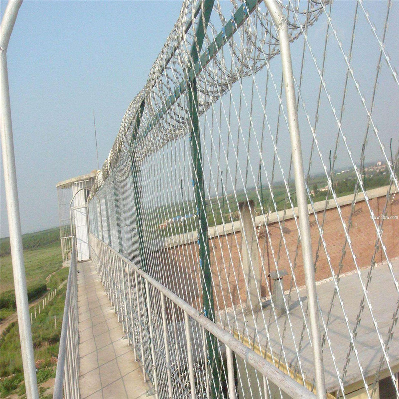 監(jiān)獄的圍墻都安有監(jiān)獄刀片式隔離網(wǎng),不僅極難翻越,連接近都很難,像巡邏道專用隔離網(wǎng)、車行通道隔離網(wǎng)等圍墻都采用不同的刀刺網(wǎng)內(nèi)外分別有10米和12米的警戒隔離帶,豎有4米高的防攀爬金屬防護(hù)隔離網(wǎng),并配備了探測報(bào)警系統(tǒng),能通過紅外線、微波和光纖等方式捕捉區(qū)域內(nèi)的侵入物體信號并發(fā)出警報(bào)。