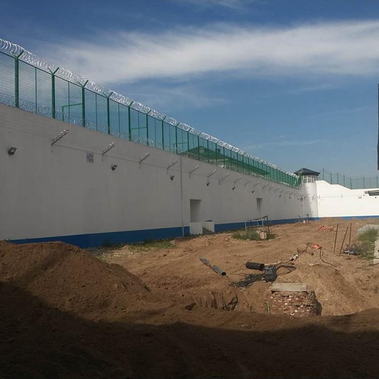 監(jiān)獄隔離網是非常重要的監(jiān)獄安全防護設施,由焊接鋼網加蛇腹形刀刺網組合而成。產品具有結構新穎、堅固緊密、網面平整、網孔均勻、刀鋒銳利、防攀爬、抗腐蝕性強等特點。建設于監(jiān)獄的內外墻地面及高墻之上,網墻內側或頂部加裝蛇腹形刀刺網,形成一道高不可攀、難以逾越的隔離障礙。配合高壓打擊電網、各種監(jiān)控報警設備確保監(jiān)獄安全萬無一失。