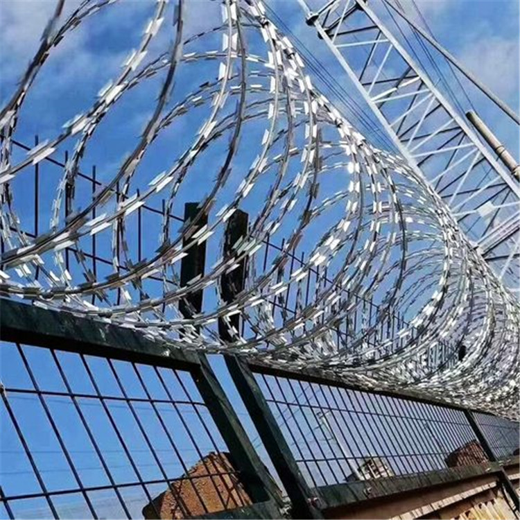 新聞動(dòng)態(tài)蛇腹形刀刺網(wǎng)是一種近年發(fā)展起來的防護(hù)、隔離能力較強(qiáng)的新型防護(hù)網(wǎng)產(chǎn)品。它采用鋼板沖壓成型包附于熱鍍鋅鋼絲之上,由鍍鋅鋼板或不銹鋼薄板做刀片,高張力鋼絲做芯線組合而成的。鋒利的刀型刺由雙線扣裝后成蛇腹?fàn)?,既美觀又讓人不寒而栗,起到了很好的阻嚇作用。