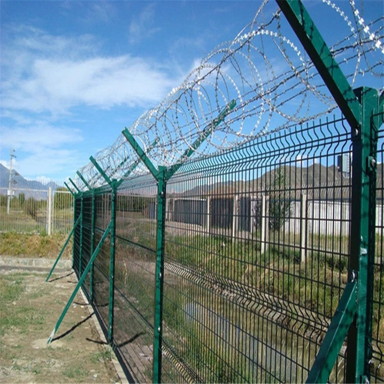 新聞動(dòng)態(tài)Y型安全防御護(hù)網(wǎng)可用作監(jiān)獄鋼網(wǎng)墻也可用作機(jī)場圍界,是由V型支架立柱加強(qiáng)型焊接片網(wǎng),安全防盜連接件和熱鍍鋅刀片刺網(wǎng)組成強(qiáng)度和安全防御性級(jí)別很高。被廣泛應(yīng)用在監(jiān)獄,軍事基地等高安全場所。立柱為60X60的矩形鋼,頂端焊有V型之架,或者采用70mmX100mm的掛式連接立柱。立柱高度2.5米成Y字型,在2米高的網(wǎng)片上邊架上直徑50cm或60cm的刀刺網(wǎng),整體下來高度2.5米,是無法攀爬或翻越的,在孔徑選擇上邊一般5cmx10cm的就可以了。