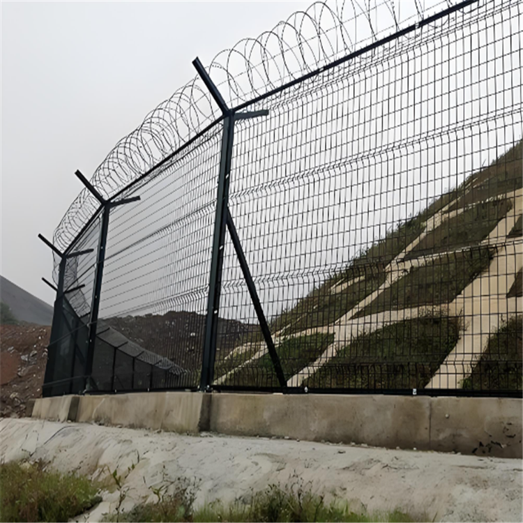 Y型安全防御護(hù)網(wǎng)不僅是一種簡(jiǎn)單的防護(hù)網(wǎng)和隔離網(wǎng),它還可以設(shè)置在公路、橋梁、廠區(qū)、邊境等多個(gè)地方,能夠起到維護(hù)交通秩序,防止交通意外的發(fā)生和美化城市樣貌的功能。用于監(jiān)獄機(jī)場(chǎng)使用的話網(wǎng)片通常采用高強(qiáng)度低碳鋼絲強(qiáng)力焊接,立柱為矩形鋼及高強(qiáng)度圓管,頂部加焊V型支架,大大增強(qiáng)了圍網(wǎng)的抗沖擊力,鋼筋直徑≥5mm相鄰橫筋間距≤100 mm,左右間距≤50 mm,立柱厚度≥2mm,截面60mmx 60mm,為了增加抗風(fēng)能力,可每相距6m設(shè)置一根斜支撐。其他場(chǎng)地應(yīng)用要求沒(méi)那么嚴(yán)格可適當(dāng)降低規(guī)格。