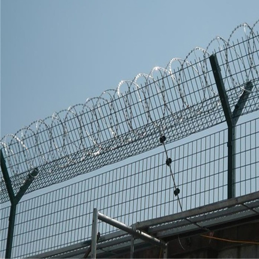 機場圍欄網(wǎng)由安全防盜連接件和熱鍍鋅刀片刺籠組成,是具有高強度和安全防御級別的隔離柵產(chǎn)品。近年來,機場圍欄網(wǎng)已被廠泛應用于機場、軍事基地等高安全場所。在機場圍欄網(wǎng)的頂部加裝刀片刺絲、刀片刺繩,可有效增強安全防護性能。原料材質(zhì):采用國標Q195低碳鋼冷拔絲、管等。