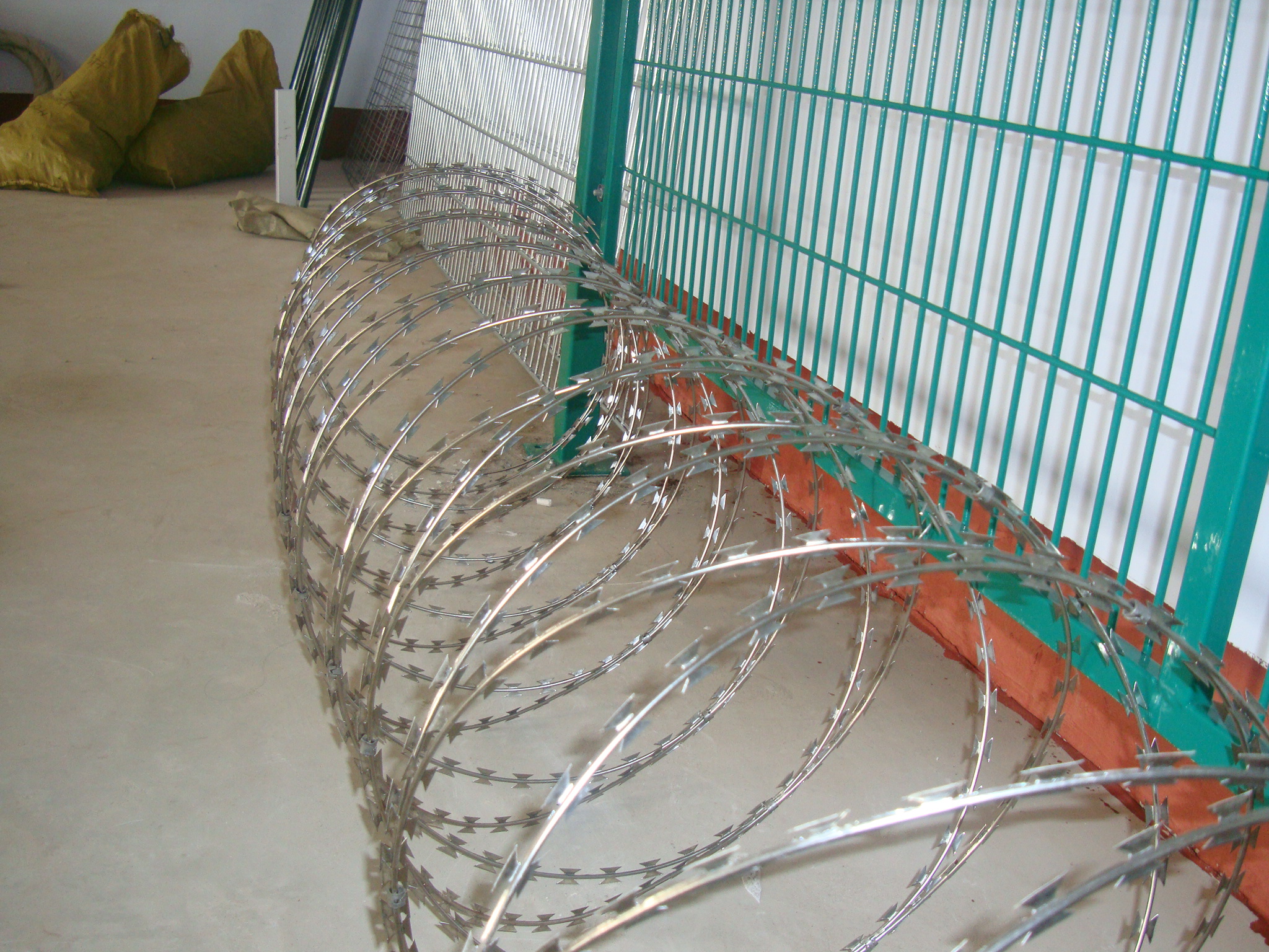 螺旋式刀片刺網(wǎng) 雙螺旋刀刺圈網(wǎng),是一種新型防護(hù)網(wǎng)。刀片刺繩具有美觀、經(jīng)濟(jì)實(shí)用、防阻效果好、施工便利等優(yōu)異特點(diǎn),目前,刀片刺繩已被廣泛應(yīng)用于許多國家的工礦企業(yè),園林公寓,邊防哨所,軍事領(lǐng)域,監(jiān)獄,看守所,政府建筑物和其他國家的安全設(shè)施。