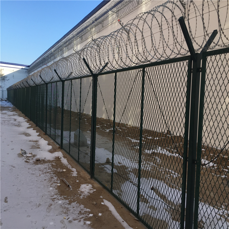 監(jiān)獄護(hù)欄網(wǎng)又叫監(jiān)獄防護(hù)網(wǎng)、監(jiān)獄圍網(wǎng),多采用Y形柱刀片刺網(wǎng),具有良好的震懾、防翻越效果,材質(zhì)堅(jiān)硬,高強(qiáng)度,高張力,造型設(shè)計(jì)獨(dú)特,不宜觸摸,因而能達(dá)到極好的防護(hù)隔離效果。