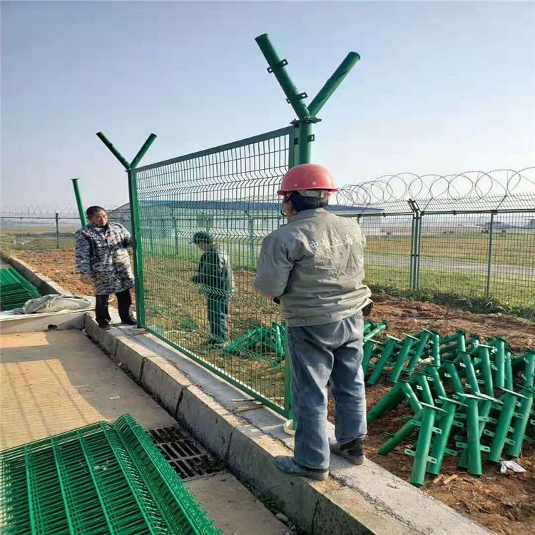 機場圍界又稱作“Y型安全防御護網(wǎng)”,是由V型支架立柱加強型焊接片網(wǎng),安全防盜連接件和熱鍍鋅刀片刺網(wǎng)組成強度和安全防御性級別很高。機場圍界被廣泛應用在機場,軍事基地等高安全場所。